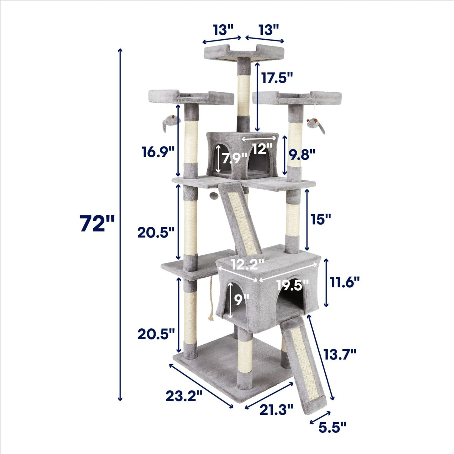 • Ten fully wrapped sisal scratching posts give extra space for scratching—plus, two scratch board ramps make this great for multi-cat households.