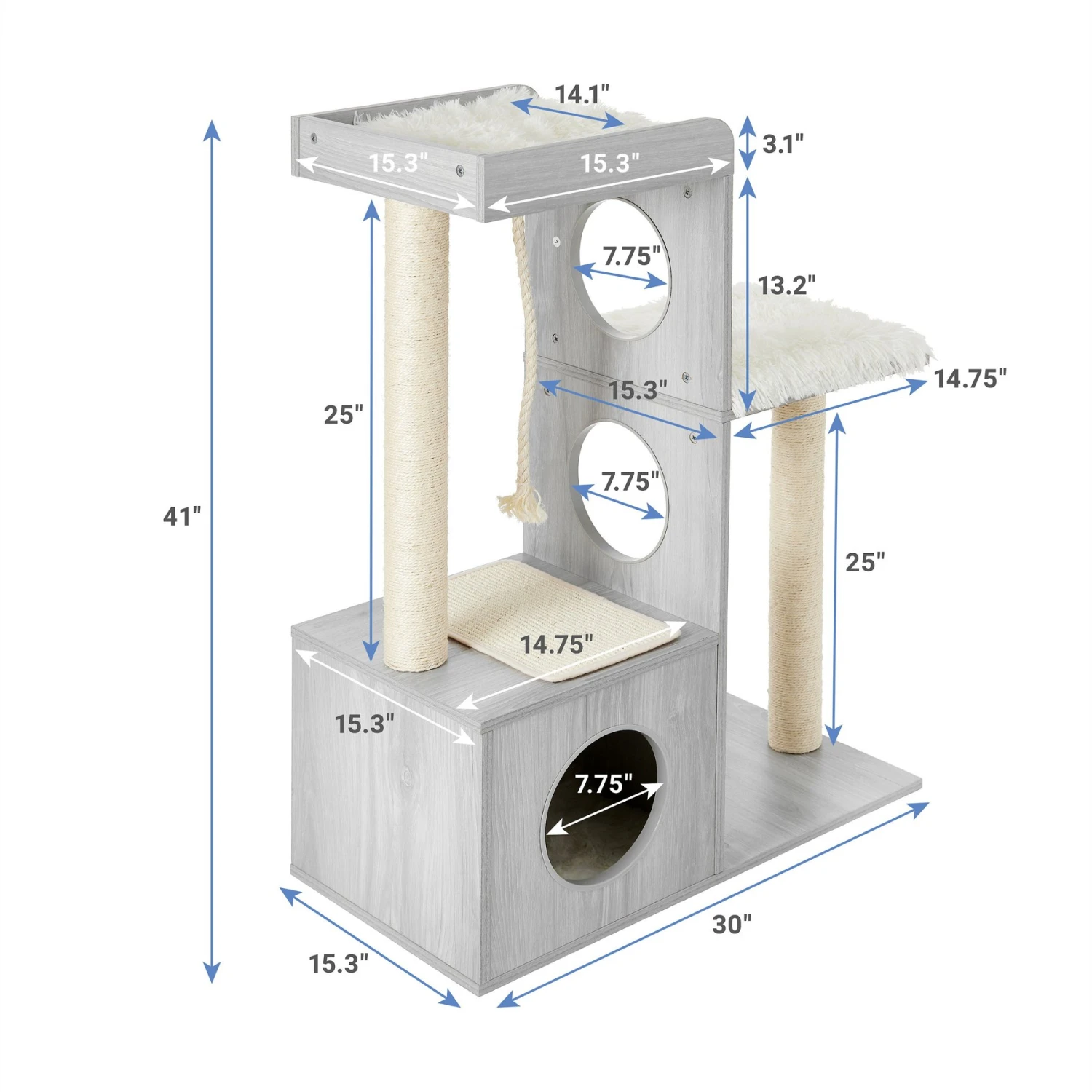 • 41-inch tall cat tree helps satisfy your cat’s core needs at home—play and enrichment, vertical and horizontal scratching, privacy, comfort and elevated spots for napping and lounging.